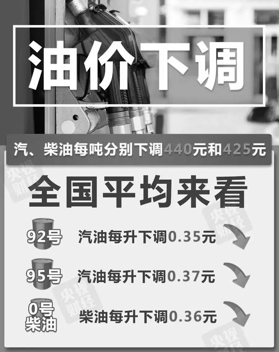 央視財(cái)經(jīng)記者從國(guó)家發(fā)改委獲悉,受國(guó)際油價(jià)大幅下跌影響,國(guó)內(nèi)成品油價(jià)格連續(xù)第二次下調(diào),部分地區(qū)92號(hào)汽油重回7元區(qū)間。本次油價(jià)調(diào)整具體情況如下:國(guó)內(nèi)汽、柴油零售限價(jià)每噸分別下調(diào)440元、425元。
