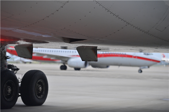 8月4日早晨6時(shí)30分,隨著臺風(fēng)“卡努”轉(zhuǎn)道離境,上海虹橋國際機(jī)場持續(xù)整晚的大雨漸漸停歇,大批出港航班開始進(jìn)行航前準(zhǔn)備工作,機(jī)坪上擺渡車、客梯車、行李車往返穿梭,工作人員步履匆匆,一派忙碌景象。東航技術(shù)公司虹橋維修基地空客航線一分部的“80后”放行工程師裘磊此時(shí)已經(jīng)冒雨在285橋位前忙碌了近一個(gè)小時(shí),從上海出發(fā)飛往青島的MU9979航班即將起飛,這是東航今日在虹橋機(jī)場執(zhí)行的第一批出港航班之一,有120余名旅客正在客艙內(nèi)等候開啟他們的暑期行程。
