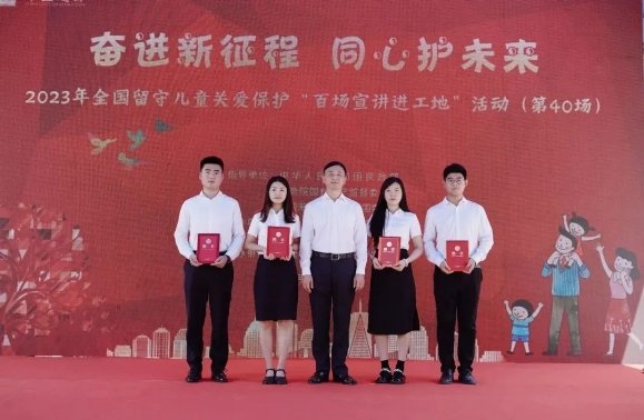 為2023年度全國(guó)留守兒童關(guān)愛(ài)保護(hù)“百場(chǎng)宣講進(jìn)工地”活動(dòng)志愿者頒發(fā)聘書(shū)