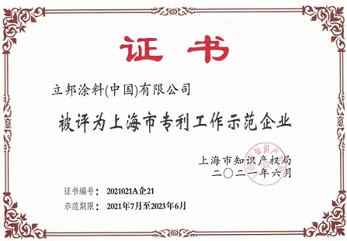 立邦獲評(píng)上海市專利工作示范企業(yè)