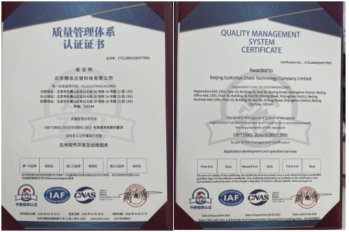 近日,經(jīng)專業(yè)認(rèn)證機(jī)構(gòu)中泰智聯(lián)(北京)認(rèn)證中心有限公司一系列嚴(yán)格的審查考核,北京隨信云鏈科技有限公司 ( 下稱:隨信云鏈 ) 憑借 優(yōu)秀的質(zhì)量管理體系在應(yīng)用軟件開發(fā)及運維服務(wù)領(lǐng)域,成功獲得ISO9001: ?2015國際質(zhì)量管理體系認(rèn)證。