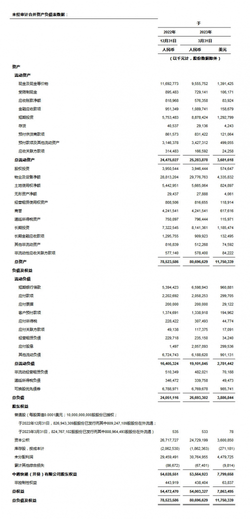 2023年第一季度未經(jīng)審計(jì)財(cái)務(wù)業(yè)績