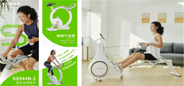 KSMILE為新世代年輕人打造的居家個(gè)性健身品牌,將健身與娛樂、智能科學(xué)、自我管理融為一體,為家用健身行業(yè)注入新的活力。本屆體博會(huì)KSMILE展示了智能科技與顏值兼?zhèn)涞呐懿綑C(jī)、健身車、劃船機(jī)等產(chǎn)品,讓現(xiàn)場(chǎng)觀眾親身體驗(yàn)康樂佳為家庭用戶提供的高品質(zhì)健身器材。可以重點(diǎn)關(guān)注K8944B-2圓形動(dòng)感單車、K8328BSW自發(fā)電立式車、K8750TP-1等產(chǎn)品。