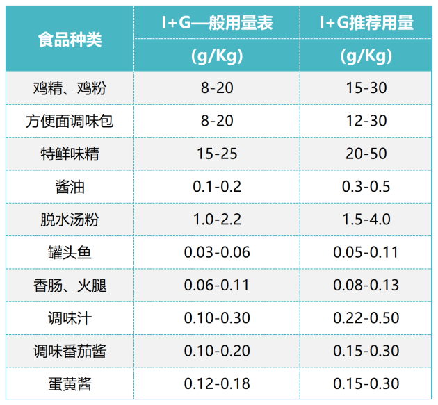 味精和I+G是互為依賴的增鮮劑,兩者合理并用時(shí),可使菜肴鮮味躍增,達(dá)到味精無(wú)法達(dá)到的鮮味,我們稱之為“鮮味”的相乘效果。使用時(shí),I+G添加量約為味精的2~5%,其增鮮效果可以提高3~6倍左右,而且對(duì)產(chǎn)品品質(zhì)有很大提升,使味覺明顯改善,甜、酸、苦、辣、鮮、香和咸味等更加濃郁而協(xié)調(diào),更接近天然食品的味道。