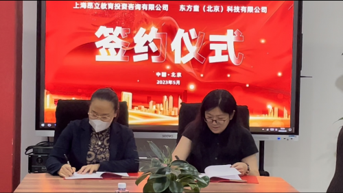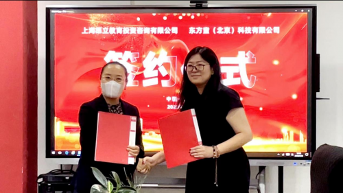 東方童(北京)科技有限公司文化傳媒事業(yè)部總經(jīng)理尹健穎、上海昂立教育投資咨詢有限公司研學項目負責人金玫伶舉行簽約儀式