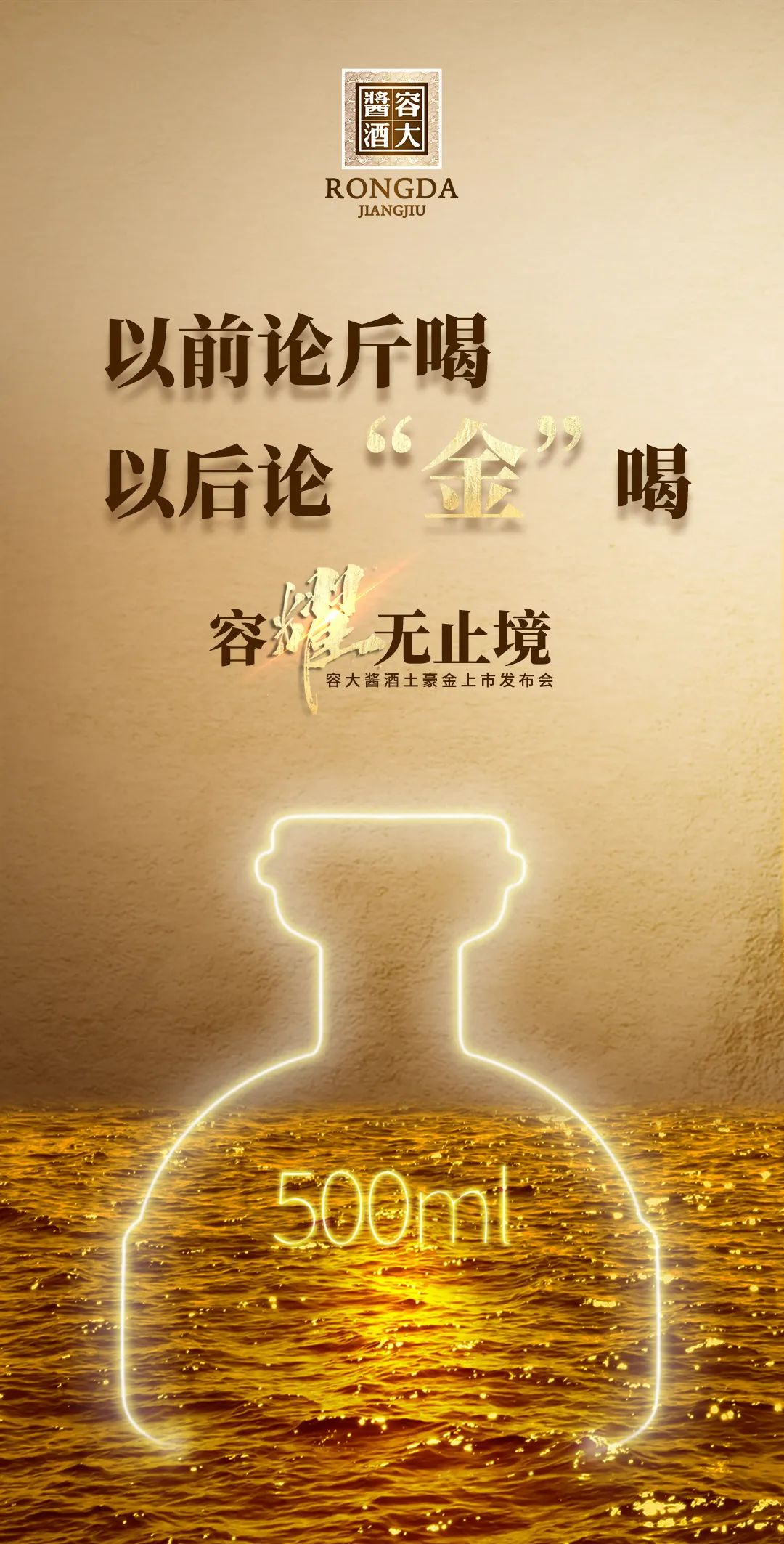 4月24日,主題為“容·耀無(wú)止境”的新品發(fā)布會(huì)將在海南三亞拉開(kāi)帷幕,屆時(shí),容大醬酒“土豪金”將正式閃亮登場(chǎng),與經(jīng)銷商消費(fèi)者見(jiàn)面。“土豪金”定價(jià)多少,又有何魅力?即將揭曉!