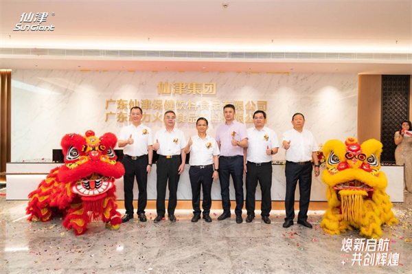 在瑞獅吐福的喜慶氣氛中,政府及行業(yè)各界嘉賓與仙津集團(tuán)領(lǐng)導(dǎo)高層,移步至揭牌儀式區(qū),松山湖黨工委委員、管委會(huì)委員黃鏡銓、松山湖管委會(huì)總經(jīng)濟(jì)師兼北部片區(qū)黨委書(shū)記陳潮暉、中國(guó)食品工業(yè)協(xié)會(huì)顧問(wèn)張俊修、東莞市工商聯(lián)主席黃建平、東莞市上市公司協(xié)會(huì)會(huì)長(zhǎng)林海川,廣東仙津集團(tuán)有限公司董事長(zhǎng)鄧志華共同為仙津集團(tuán)揭牌,標(biāo)志著仙津集團(tuán)拉開(kāi)嶄新序幕,走向全新征程!