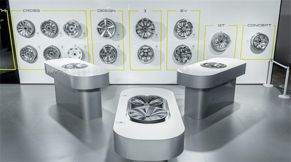 現(xiàn)場(chǎng)還展示了PLAY.STH的5個(gè)系列13款輪轂,分別為CROSS系列、X系列、GT系列、DES!GN系列、EV系列等,多款造型適配不同用車場(chǎng)景。這5個(gè)系列輪轂均為6061-T6 鋁合金材質(zhì)的鍛造輪轂,結(jié)構(gòu)強(qiáng)度高,成品輕量化。據(jù)了解,其中的CR01\CR02\CR03 款是國(guó)內(nèi)首批獲得 LM 認(rèn)證的輪轂,PLAY.STH所有輪轂產(chǎn)品在上市前均會(huì)主動(dòng)完成車輪沖擊性能試驗(yàn)、車輪動(dòng)態(tài)彎曲疲勞性能試驗(yàn)、車輪動(dòng)態(tài)徑向疲勞性能試驗(yàn)等輪轂三大安全性能試驗(yàn),漆膜品控堅(jiān)持更高要求的車規(guī)級(jí)標(biāo)準(zhǔn)。內(nèi)部輪轂及整車設(shè)計(jì)團(tuán)隊(duì)溝通配合,確保產(chǎn)品在造型出眾的同時(shí),滿足安全可靠的基本要求。