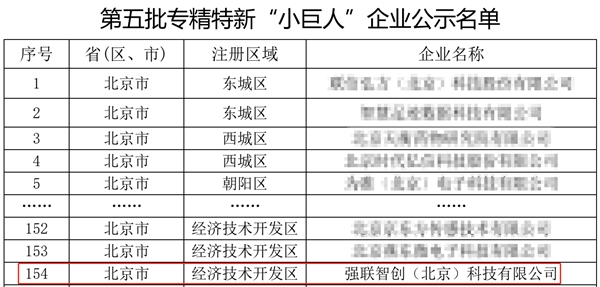 7月14日,北京市經(jīng)信局發(fā)布第五批專精特新‘小巨人’企業(yè)公示名單,強(qiáng)聯(lián)智創(chuàng)?等243家企業(yè)上榜。