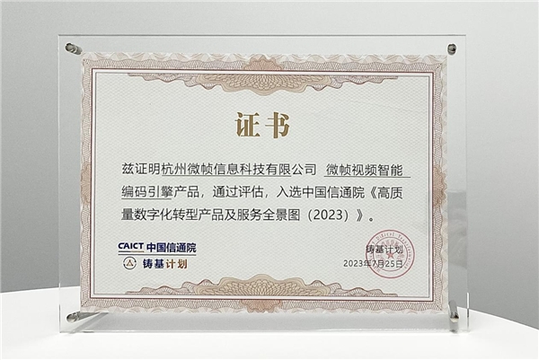 7月27日,由中國信通院主辦的“2023數(shù)字生態(tài)發(fā)展大會”暨中國信通院“鑄基計劃”年中會議在北京召開。本次大會全面總結了“鑄基計劃”上半年度工作成果,并重磅發(fā)布了《高質(zhì)量數(shù)字化轉型產(chǎn)品及服務全景圖(2023)》。微幀科技作為全球領先的視頻編碼及AI解決方案提供商受邀出席會議,【微幀視頻智能編碼引擎】以行業(yè)領先的編碼性能、不斷突破技術極限的自研能力,實力入選全景圖。