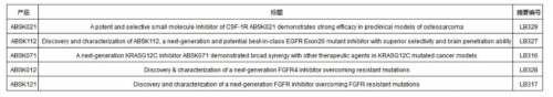 其中包括其自主研發(fā)的已獲中美雙突破性療法認定 的CSF-1R抑制劑Pimicotinib(ABSK021) 和可能成為best-in-class的新一代克服耐藥突變的EGFR Exon20抑制劑ABSK112 ,以及新一代克服耐藥突變的FGFR4 抑制劑ABSK012和FGFR抑制劑ABSK121,新一代KRAS抑制劑ABSK071的最新臨床前和轉化醫(yī)學研究進展。
