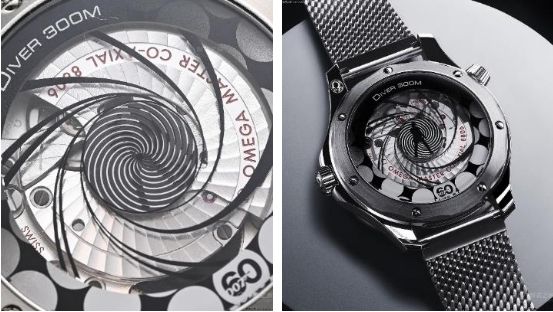 這種通過秒針聯(lián)動的功能,歐米茄并不是第一次使用。在此之前,2020年推出歐米茄超霸系列“史努比獎”50周年紀念腕表(第三代史努比),手表背面就是靠計時秒針(計時表的中央計時秒針)聯(lián)動,帶動背面的史努比飛船,沿著底蓋外圈,繞月飛行。同時,正常的走時小秒針,會帶動表背的地球,持續(xù)轉(zhuǎn)動?,F(xiàn)在,海馬系列300米潛水表詹姆斯·邦德60周年紀念版精鋼款將秒針聯(lián)動呈現(xiàn)出“動態(tài)效果”,其中蘊含的創(chuàng)意令人嘆為觀止。