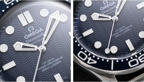 海馬300米“詹姆斯·邦德60周年紀念款”表盤為波浪紋,帶有“棒棒糖”秒針