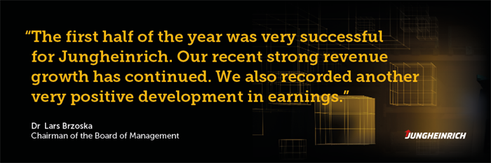 永恒力集團董事會主席Lars Brzoska博士解釋道:“今年上半年對永恒力而言可謂碩果累累。我們延續(xù)了近期營業(yè)收入強勁增長的勢頭。增幅達到了46%,我們在盈利方面再次實現(xiàn)了極為喜人的增長。通過收購Storage Solutions集團,我們在美國貨架系統(tǒng)和倉儲自動化領(lǐng)域贏得了一個重要的增長點。這一點目前已首次體現(xiàn)在集團的合并財務(wù)報表內(nèi)。我們繼續(xù)推進實施2025+戰(zhàn)略,并確認本年度的預(yù)測數(shù)據(jù)。永恒力已經(jīng)為迎接未來做好了充分的準備。”