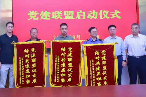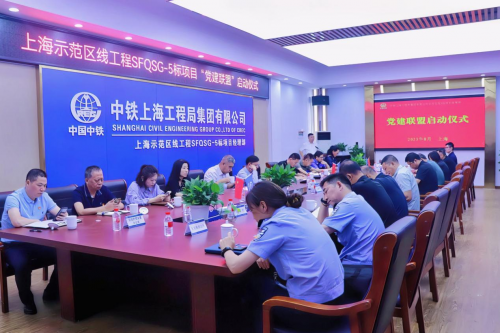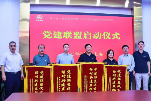 啟動儀式現(xiàn)場,青浦區(qū)朱家角鎮(zhèn)黨委委員王磊,中鐵上海工程局集團有限公司城建分公司黨委副書記、工會主席張文續(xù),上海申鐵投資有限公司項目經(jīng)理何喬石現(xiàn)場為各聯(lián)建單位授予“黨建聯(lián)盟促發(fā)展,結(jié)對共建顯擔當”錦旗,并共同見證上海示范區(qū)線5標項目部與各單位締結(jié)《黨建聯(lián)建協(xié)議書》。據(jù)了解,聯(lián)盟成立后,各聯(lián)建單位將相互交流黨建工作經(jīng)驗,共同開展黨建共建活動,通過推進區(qū)域化黨建,盤活黨組織力量資源,實現(xiàn)黨建與生產(chǎn)深度融合,以高質(zhì)量黨建引領(lǐng)高質(zhì)量發(fā)展。