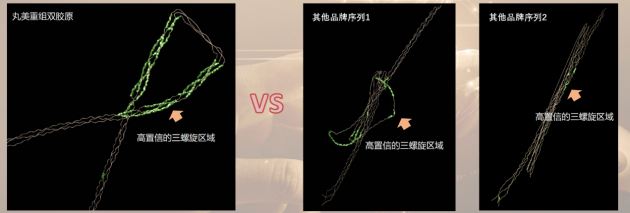 “三股螺旋”結(jié)構(gòu)被稱為“房子的屋梁”,對(duì)膠原蛋白的生物活性表達(dá)至關(guān)重要。而在業(yè)內(nèi),真正實(shí)現(xiàn)三股螺旋結(jié)構(gòu)的膠原蛋白原料寥寥無(wú)幾。