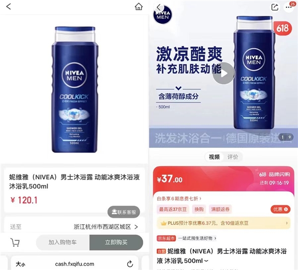 (左圖為山寨網(wǎng)站,右圖為京東網(wǎng)站)
