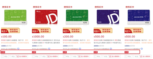 這里再叮囑一句,京東E卡有實(shí)體卡與電子卡之分,商品頁面會(huì)有相關(guān)標(biāo)識(shí),購買時(shí)務(wù)必認(rèn)準(zhǔn),以免帶來不便。