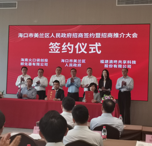 4月24日,海南省??诿捞m區(qū)人民政府招商推介暨簽約大會(huì)在??谂e行。此次活動(dòng)是美蘭區(qū)主動(dòng)出擊搶抓經(jīng)濟(jì)復(fù)蘇新機(jī)遇、新市場(chǎng),全面激發(fā)轄區(qū)經(jīng)濟(jì)活力,打開(kāi)美蘭政企合作新局面,呈現(xiàn)招商引資“走出去、引進(jìn)來(lái)”碩果的一次展示。福建滴咚共享科技股份有限公司受邀參加本次活動(dòng),總裁陳瑞娜作為代表出席。