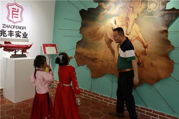 在300多平米店鋪,向人們展示皮雕文化起源,皮雕藝術(shù)發(fā)展、皮雕材質(zhì)應(yīng)用、皮雕文創(chuàng)產(chǎn)品,皮雕體驗等,亮相人們視野,仿佛走進(jìn)皮雕博物館,其中巨幅紅色皮雕文化作品《新征程、再出發(fā)》、《江山永固》、《氣壯山河》等引人矚目,令人贊嘆不已。