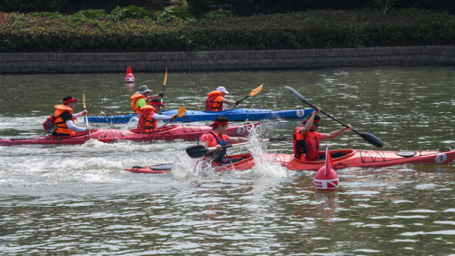 2023年5月13日,由上海市社會體育管理中心(上海市體育競賽管理中心)、閔行區(qū)體育局、新虹街道黨工委、新虹街道辦事處共同主辦,上海盈動體育文化股份有限公司承辦,上海市船艇運動協(xié)會、江蘇省船艇運動協(xié)會、浙江省船艇運動協(xié)會、安徽省水上運動協(xié)會、上海申鐵投資有限公司聯(lián)合支持的2023年上海城市業(yè)余聯(lián)賽“新虹杯”長三角皮劃艇·槳板邀請賽在新虹街道華翔綠地公園水域隆重舉行,來自長三角地區(qū)的兩百余名水上運動愛好者在新虹街道華翔綠地公園水域乘風破浪,踏水前行。