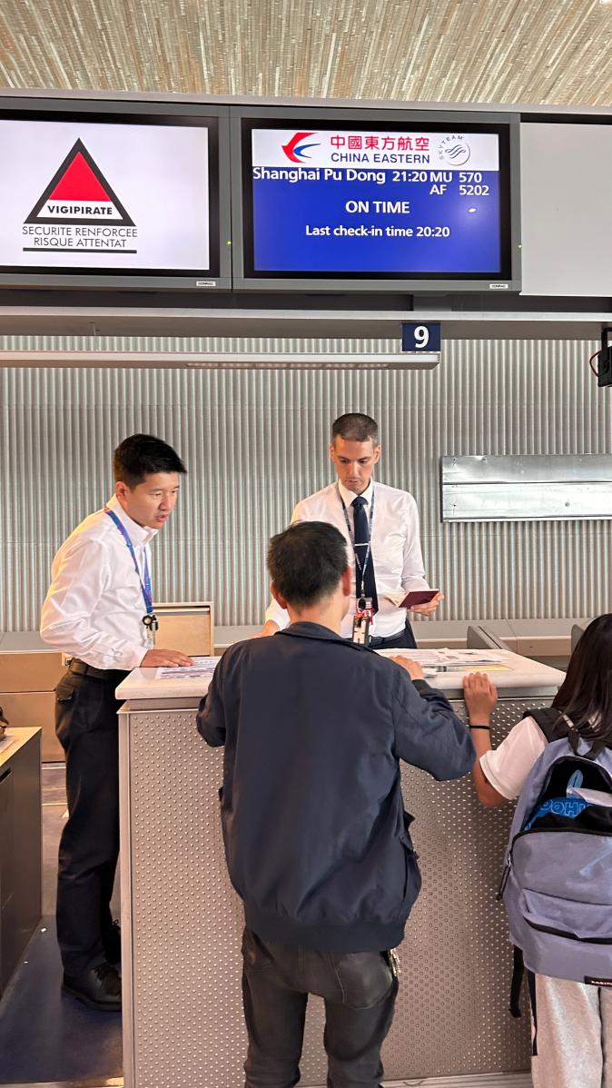 夏令營全體成員在巴黎戴高樂國際機(jī)場集結(jié)出發(fā)。