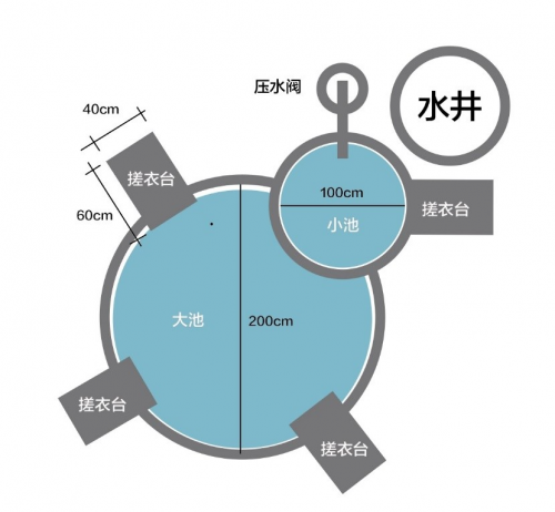 這個由專業(yè)人員設(shè)計的洗衣池使用的是旁邊一口老井的清潔水源,冬暖夏涼。由于設(shè)計巧妙,水流還可以在洗衣過程中多次利用。同時,四個帶有石制搓板的洗衣位均勻分布在洗衣池的周圍,充分照顧了村民們的社交需求,一邊洗衣服一邊聊天輕松愜意。