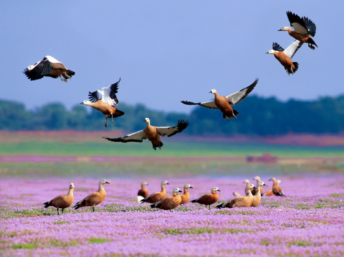 鄱陽湖過冬的赤麻鴨(攝影/楊帆,都昌縣候鳥自然保護(hù)區(qū)管理局提供)