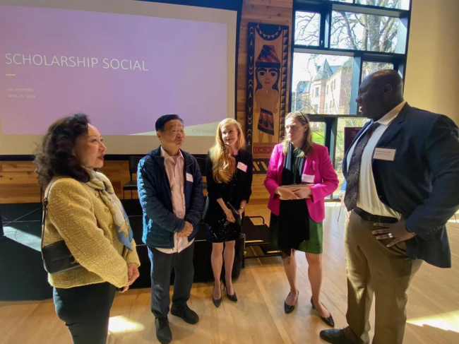2023年4月25日,華盛頓大學(xué)醫(yī)學(xué)院舉辦獎(jiǎng)學(xué)金捐贈(zèng)人答謝酒會(huì),華大醫(yī)學(xué)院以及華大醫(yī)院代理院長(zhǎng)Timothy Dellit博士、華大醫(yī)學(xué)院副院長(zhǎng)Gerald Tolbert博士、華大醫(yī)學(xué)院校友會(huì)前任會(huì)長(zhǎng)Pam Yung博士等出席酒會(huì)并致辭,華大醫(yī)學(xué)院獎(jiǎng)學(xué)金的受贈(zèng)人代表分享了他們獲得獎(jiǎng)學(xué)金資助如何改變了他們的學(xué)業(yè)和人生。華盛頓大學(xué)醫(yī)學(xué)院的師生、獎(jiǎng)學(xué)金捐贈(zèng)人等近百人參加了酒會(huì)。作為華大醫(yī)學(xué)院獎(jiǎng)學(xué)金的贊助商,505集團(tuán)公司總裁、中美加友好協(xié)會(huì)主席來輝武教授受邀參加了這次酒會(huì),并與華大醫(yī)學(xué)院師生親切交流。