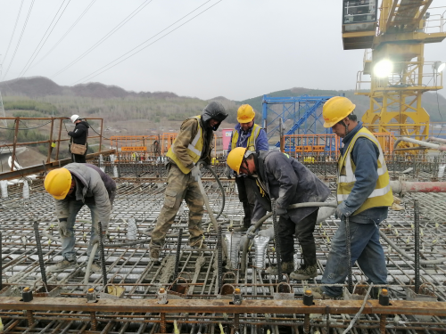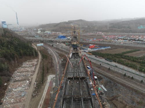 圖為沈白高鐵建設(shè)中的白山渾江特大橋,該橋是全線控制性工程,全橋長1499.5米,全橋共有鉆孔樁588根,橋墩臺56個(gè),大跨度連續(xù)梁3個(gè),道岔連續(xù)梁1個(gè),正在澆筑混凝土的是道岔連續(xù)梁和10號墩0#塊。該橋先后跨越渾江、輝臨高速公路及G201國道,涉臨近鐵路既有線施工,安全風(fēng)險(xiǎn)高,施工難點(diǎn)多。