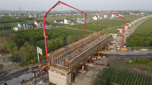 圖為:首孔槽型梁澆筑順利完成