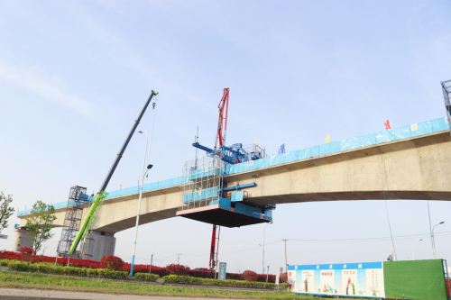 圖為:跨港城中通道連續(xù)梁順利合龍