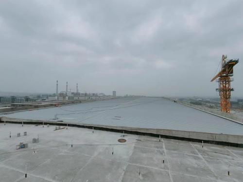 5月3日,隨著最后一塊壓形屋面板成功就位,由中鐵電氣化局集團施工的凱賽(太原)生物材料有限公司DN項目-340單元土建項目C區(qū)鋼結(jié)構(gòu)屋面順利封頂。