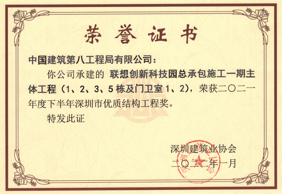 項目先后取得了深圳市優(yōu)質結構工程獎與深圳市建設工程安全生產(chǎn)及文明施工優(yōu)良工地等獎項,為業(yè)主交付滿意工程,高品質完成項目建設任務。
