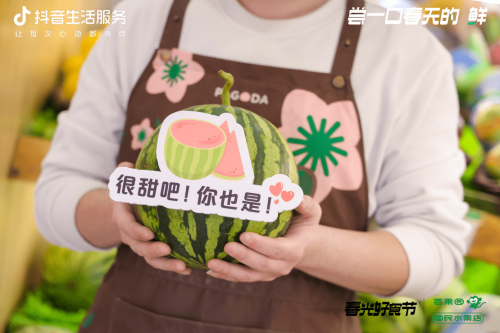 在春日鳳梨營銷旺季,百果園在上海推出了10家「春光好食節(jié)」嘗一口春天主題門店,配合抖音上新團品鳳梨,線下打造10家快閃店讓用戶進店隨處可見的水果文案與心理雞湯集合制作手舉牌,用吃水果的方式表達自己,吃的不僅僅是水果,也是一種生活態(tài)度。線下主題門店推出春季踏青限定打卡物料,線下設(shè)置抖音一店一碼物料鋪設(shè)引導ugc打卡,還有戴著可愛水果頭套的店員為用戶推薦春日好果。讓用戶行走在春日街頭,走進百果園仿佛走進春天的水果世界。
