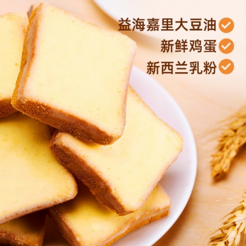 用料上,梅尼耶干蛋糕全程采用現(xiàn)代先進工藝用心烘焙,優(yōu)選進口新西蘭乳粉和益海嘉里大豆油、精選優(yōu)質(zhì)小麥粉和白砂糖,新鮮蛋液制作,不加一滴水,不添加防腐劑、色素,0反式脂肪酸,老人小孩也可以吃的健康,吃得放心!