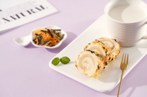 盼盼肉松海苔戚風卷,不愧是盼盼食品深耕烘焙產(chǎn)品的又一力作!外面滿滿的一層肉松與海苔,這絕妙搭配,讓整塊蛋糕卷的風味更上一個臺階!恰到好處的咸香口味,中和了甜點本會有的甜膩。第一眼看到松軟又帶有淡淡油潤的肉松上鋪著微脆的小片海苔,松軟鮮香,好吃又不膩,讓人忍不住深入挖掘,一探究竟!