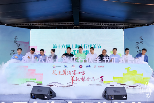 最后,奉賢區(qū)委、新民晚報(bào)、東方廣播中心、東方網(wǎng)、區(qū)融媒體中心、區(qū)文旅局、區(qū)農(nóng)委、莊行鎮(zhèn)及上海貴酒的領(lǐng)導(dǎo)共同開(kāi)啟注水儀式,手持水瓶緩緩澆在寫(xiě)有“第十六屆上海莊行伏羊節(jié)正式啟動(dòng)”字的模具里,將開(kāi)幕式的儀式感徹底拉滿。