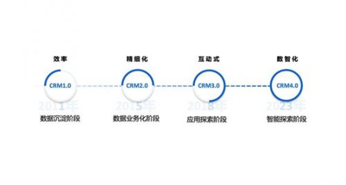 南訊向36氪展示了產(chǎn)品和服務(wù)的迭代升級(jí),作為助力品牌連接用戶的紐帶,在不斷進(jìn)化的十三年時(shí)間里,南訊圍繞ToC領(lǐng)域CRM的進(jìn)化過(guò)程,將CRM從1.0到4.0總結(jié)為:數(shù)據(jù)沉淀階段、數(shù)據(jù)業(yè)務(wù)化階段、應(yīng)用探索階段、智能探索階段,并且提煉出了4個(gè)發(fā)展階段的核心要點(diǎn):效率、精細(xì)化、互動(dòng)式、數(shù)智化。