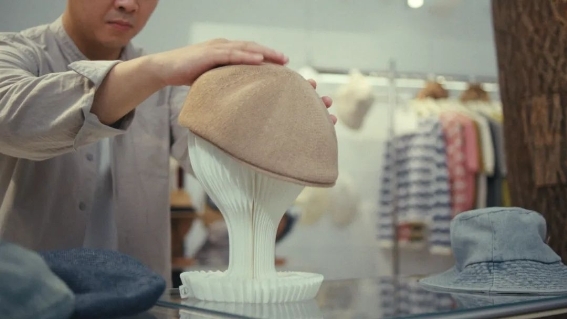 當(dāng)他把做抖音的事告訴妻子后,兩人開(kāi)始商量賽道——妻子提議做帽子,因?yàn)樗x書(shū)時(shí)就喜歡戴帽子。