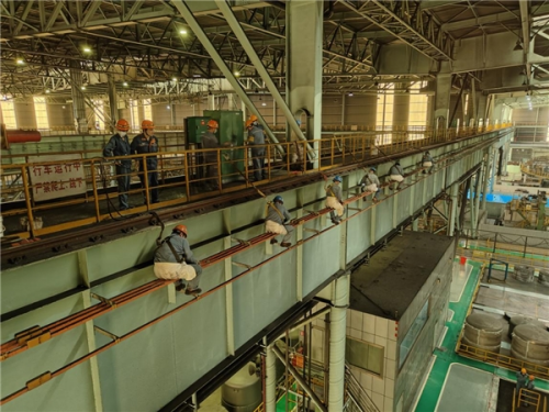 截止18點(diǎn)00分,隨著硅鋼事業(yè)部第二智慧工廠6-2行車滑線檢修項(xiàng)目一次性試車成功,標(biāo)志著第二智慧行車滑線檢修項(xiàng)目施工任務(wù)圓滿結(jié)束,刷新了滑線檢修項(xiàng)目施工最短用時的新紀(jì)錄。中冶寶鋼基層單位高度重視,開工前專業(yè)點(diǎn)檢人員積極與硅鋼事業(yè)部溝通協(xié)調(diào)停機(jī)時間,同時從班組抽調(diào)出10余名精兵強(qiáng)將參與到此次劃線檢修的施工中。施工前現(xiàn)場進(jìn)行列隊(duì)安全交底,辦理相關(guān)手續(xù),落實(shí)各項(xiàng)安全措施,嚴(yán)格執(zhí)行“三方掛牌”制度。在檢修過程中,公司結(jié)合自身特點(diǎn)和實(shí)際情況,認(rèn)真落實(shí)二級高危安全要求,作業(yè)人員佩戴和正確使用合格的“四合一”檢測儀。從安全交底的落實(shí)到安全帶的規(guī)范佩戴,從安全繩的安裝到現(xiàn)場安全的監(jiān)護(hù),對每一個環(huán)節(jié)都絲毫不敢懈怠。在克服高空作業(yè)、戰(zhàn)線長、工期緊等施工難度的同時,對施工質(zhì)量也高標(biāo)準(zhǔn)嚴(yán)要求,滑線吊掛夾更換按照維修作業(yè)標(biāo)準(zhǔn),做好每一道工序每一個步驟,嚴(yán)把質(zhì)量關(guān),為檢修用時提供了有力保證,