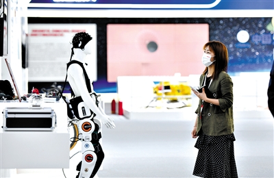 參觀(guān)者在第六屆世界智能大會(huì)上參觀(guān)天津制造業(yè)立市展。 新華社記者 趙子碩 攝