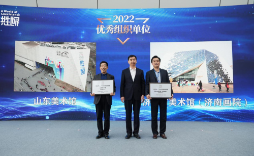 劉斯杰為山東美術(shù)館、濟(jì)南市美術(shù)館(濟(jì)南畫(huà)院)兩家優(yōu)秀組織單位頒發(fā)了獎(jiǎng)牌。
