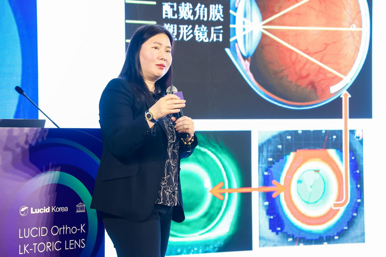 精彩致辭過后楊院長首先帶來課題分享《露晰得差異化設(shè)計(jì)一近視控制效果與視覺質(zhì)量的兼顧》,從塑形鏡的控制效果和舒適度及良好視覺質(zhì)量上不同的案例進(jìn)行解析。從控制效果來看,露晰得更穩(wěn)合東方人眼球,越戴越穩(wěn)定;在所有驗(yàn)配品牌中若用MRT展示視網(wǎng)膜離焦?fàn)顟B(tài),只有露晰得才能呈現(xiàn)非常理想的離焦?fàn)顟B(tài);同時在驗(yàn)配過程中,不能把所有的產(chǎn)品趨于同性化,不能用一個標(biāo)準(zhǔn)去要求它的驗(yàn)配,露晰得Toric設(shè)計(jì)的鏡片能夠在不規(guī)則的角膜上獲得較好的定位,因此對于視覺質(zhì)量和穩(wěn)定性都比較好。