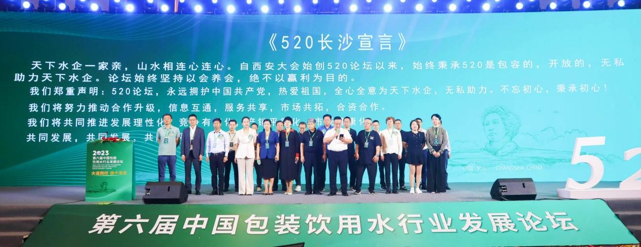 本屆中國(guó)包裝飲用水行業(yè)發(fā)展論壇(長(zhǎng)沙 520 大會(huì)),在嘉賓分享前開(kāi)啟了兩個(gè)感人的板塊,即《嗨,520!》行業(yè)發(fā)展精神的視頻和中國(guó)包裝飲用水行業(yè)發(fā)展論壇理事代表鏗鏘有力的《520宣言》:520論壇永遠(yuǎn)擁護(hù)中國(guó)共產(chǎn)黨,全心全意為天下水企無(wú)私助力······。真誠(chéng)又真實(shí)的《嗨,520!》和《520宣言》,贏得了現(xiàn)場(chǎng)嘉賓、與會(huì)者的陣陣掌聲與喝彩。