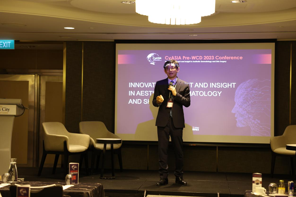 雙美生物科技股份有限公司總經(jīng)理林明毅先生在大會開幕式中致辭,他代表雙美對本次WCD會前研討會的組織者黃柏翰醫(yī)師及其他各位醫(yī)師表示衷心感謝,也很榮幸能贊助這次精彩的學(xué)術(shù)活動。林先生表示:近年來,膠原蛋白填充劑市場增長迅速,越來越多的醫(yī)生和求美者被它的獨(dú)特優(yōu)勢所吸引,Sunmax雙美深耕于膠原蛋白填充產(chǎn)品多年,今年攜Deusaderm進(jìn)入新加坡市場,相信此次通過現(xiàn)場專家們的分享與討論,一定可以使這款產(chǎn)品得到更多專家同道的認(rèn)可。雙美同時(shí)也希望借助CyASIA Pre-WCD這個(gè)國際化平臺,與更多國際領(lǐng)先的專家學(xué)者分享雙美膠原蛋白的優(yōu)勢及未來發(fā)展愿景,學(xué)習(xí)和借鑒國際前沿診療技術(shù)和理念,助力雙美產(chǎn)品走向世界,造福更多求美者!
