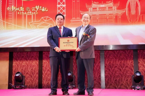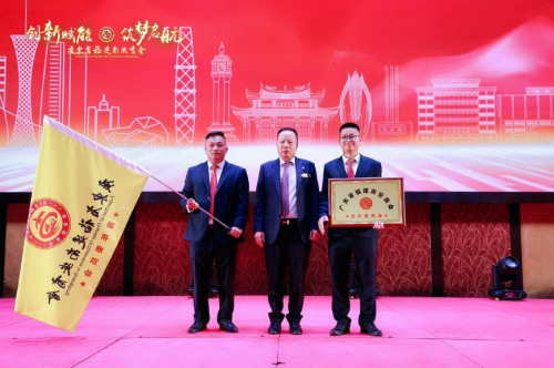 廣州市工商聯(lián)副主席余劍春為理事長顏龍坤授牌