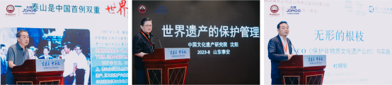 遺產(chǎn)地保護(hù)與可持續(xù)發(fā)展是一個(gè)重要的領(lǐng)域,這些遺產(chǎn)地不僅代表了人類的智慧和創(chuàng)造,更是世人與過去相連的紐帶,也是留給后人的寶貴財(cái)富。在上午學(xué)術(shù)活動(dòng)現(xiàn)場,泰山管委會(huì)原副主任、研究館員呂繼祥,中國文化遺產(chǎn)研究院原副總工程師沈陽,復(fù)旦大學(xué)國土與文化資源研究中心主任、博士生導(dǎo)師杜曉帆,3位專家進(jìn)行了主旨發(fā)言,為做好泰山的保護(hù)、研究和利用建言獻(xiàn)策。