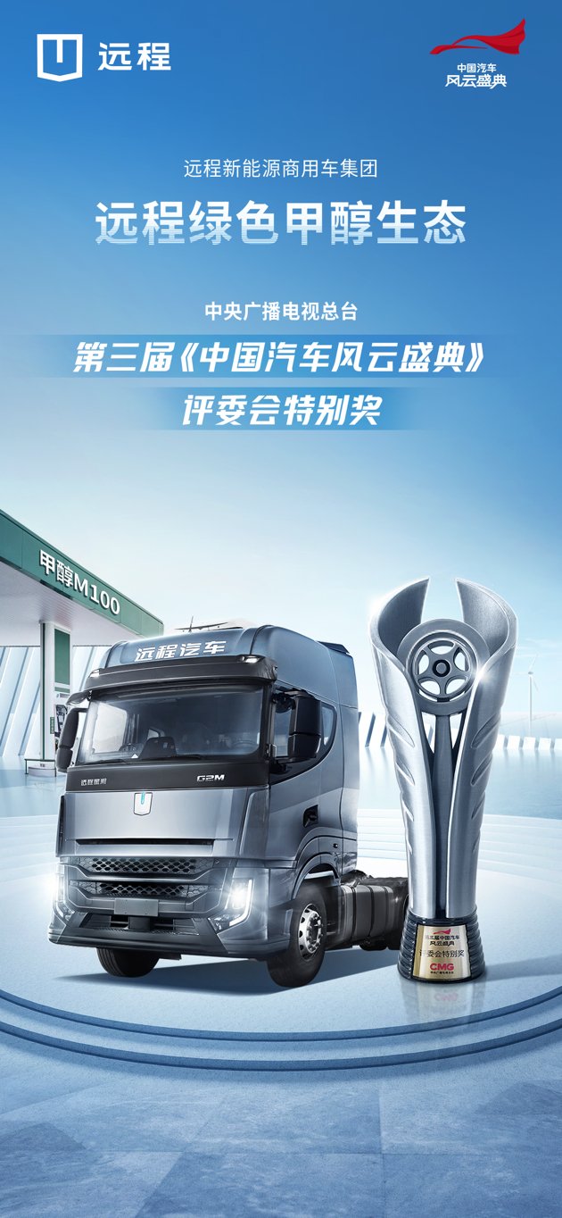 2023年4月7日,在中央廣播電視總臺(tái)主辦的第三屆《中國(guó)汽車風(fēng)云盛典》頒獎(jiǎng)典禮上,遠(yuǎn)程綠色甲醇生態(tài)榮獲評(píng)委會(huì)特別獎(jiǎng),成為首個(gè)以商用車為主體的獲獎(jiǎng)企業(yè)。