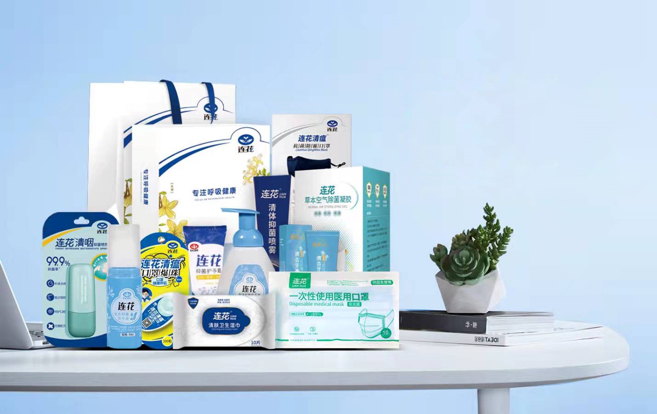 提取連花清瘟草本組方中連翹、金銀花、廣藿香、薄荷等中藥中抗菌抗病毒成分,精準選擇6種本草植物精油原料及2種精油活性成分百里香酚與香芹酚,經(jīng)過科學調(diào)配,研制出連花殺毒抑菌精油。并以該精油為基礎(chǔ)組方研發(fā)出連花消殺系列產(chǎn)品和連花防護系列產(chǎn)品,如連花空氣除菌凝膠、連花清咽抑菌噴劑、連花免洗抑菌洗手液、連花清體消毒噴劑、連花清蕊抑菌噴劑和連花清瘟口罩爆珠、連花清瘟抗菌抗病毒防護口罩、連花清瘟爆珠口罩、連花清瘟抑菌防霾口罩等產(chǎn)品。